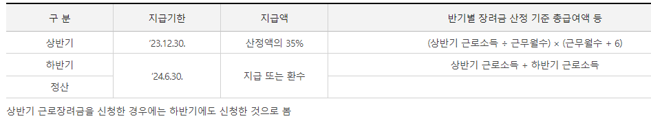 만약 근로소득 이외에 사업이나 종교인 소득이 있다면 반기신청이 아닌 근로장려금 정기신청을 해주셔야 합니다.